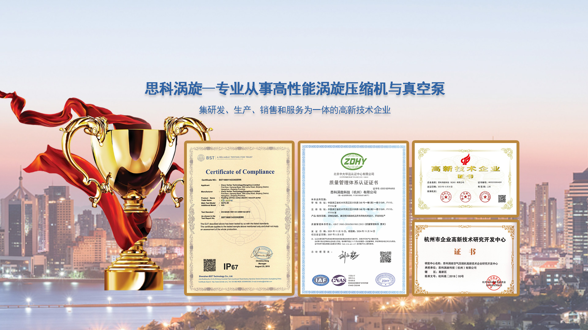 思科渦旋科技(杭州)有限公司,是一家從事高性能渦旋壓縮機與真空泵的研發(fā)、生產(chǎn)、銷售和服務(wù)為一體的高新技術(shù)企業(yè)。公司擁有多項原創(chuàng)性發(fā)明專利,占據(jù)國際無油浮動渦旋技術(shù)創(chuàng)新及應(yīng)用較前沿地位。